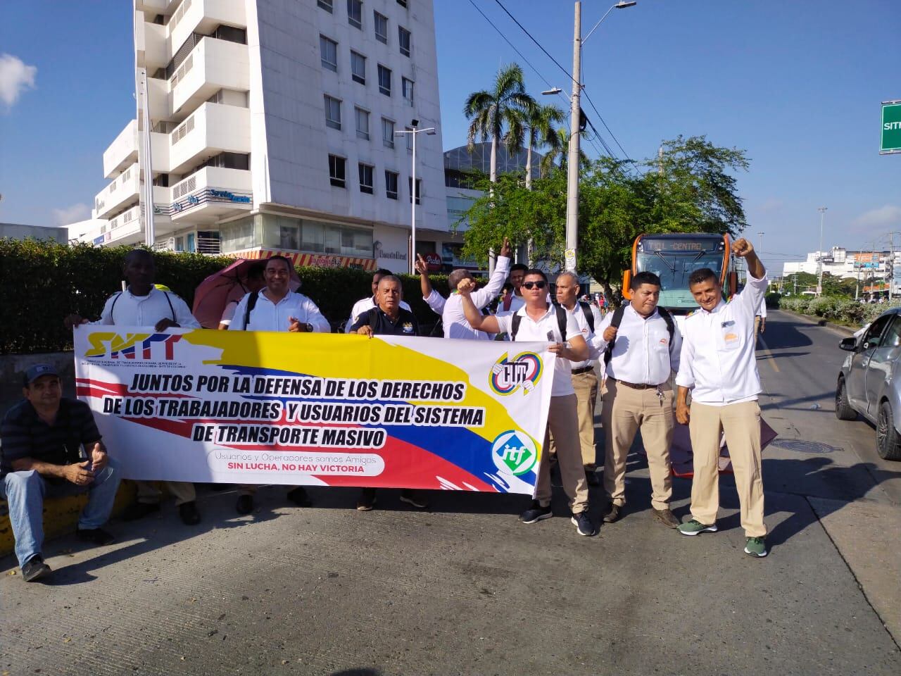 Con una banda, pancartas, megáfonos y camisetas blancas, un grupo de conductores de Transcaribe realizó una protesta con bloqueo del carril exclusivo a la altura del sector conocido como Ronda Real, en rechazo los múltiples inconvenientes que se vienen presentando en la operación del Sistema Integrado de Transporte Masivo y las largas jornadas laborales a las que son sometidos.