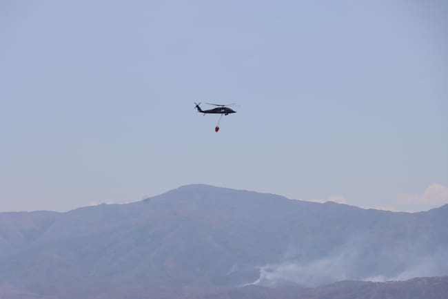 Con helicópteros de la Fuerza Aérea se intenta extinguir el incendio forestal en zona rural del municipio de Natagaima, Tolima
