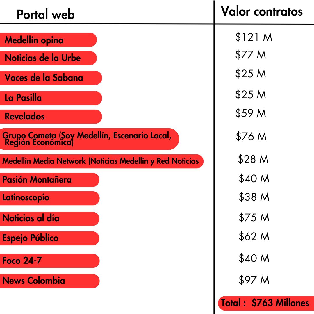 Luego de los millonarios contratos recibidos durante la administración de Daniel Quintero Calle, al menos 16 portales web, donde la pasada alcaldía invirtió al menos 760 millones de pesos en pauta publicitaria, dejaron de existir. La mayoría de estos medios fueron creados, semanas o meses antes de la contratación de pauta institucional, que se dio a través de la central de medios de Telemedellín. Posteriormente, después de que la pauta oficial terminara sus dominios no fueron renovados o se dejaron de publicar contenidos.