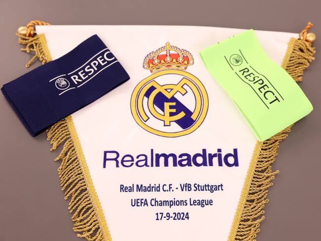 MADRID, SPAIN - SEPTEMBER 17: A detailed view of the match pennant and the UEFA Respect Captains armbands, inside the Real Madrid dressing room prior to the UEFA Champions League 2024/25 League Phase MD1 match between Real Madrid CF and VfB Stuttgart at Estadio Santiago Bernabeu on September 17, 2024 in Madrid, Spain. (Photo by Gonzalo Arroyo - UEFA/UEFA via Getty Images) / Gonzalo Arroyo - UEFA
