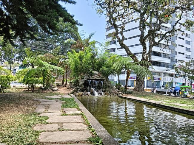La fuente de agua del parque de Los Fundadores al norte de Armenia en días de calor. Foto: Adrián Trejos