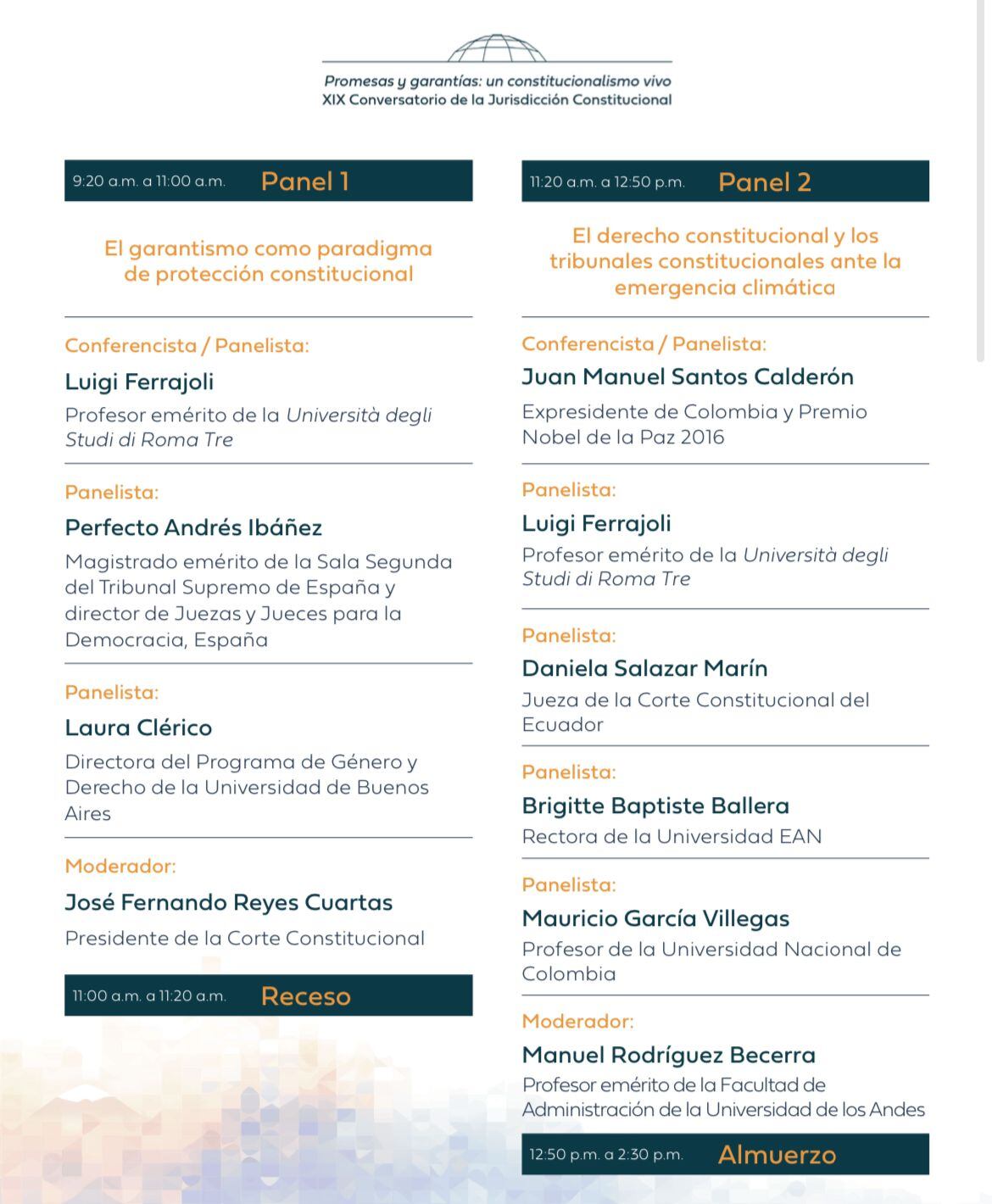 “Este escenario académico se desarrollará a partir de ocho ejes temáticos: (i) el garantismo como paradigma de protección, (ii) la emergencia climática, (iii) la justicia constitucional e internacional, (iv) el derecho penal, (v) el poder privado, (vi) el trabajo, (vii) mujer y género, y (viii) la construcción de la jurisprudencia en los distintos periodos de la Corte Constitucional”, explicó la Corte.