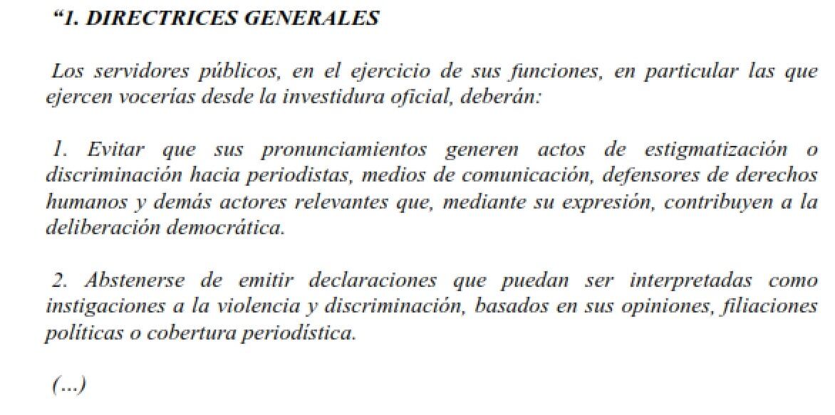 Asimismo la defensa señala que desde Presidencia se han implementado algunas medidas para que no se vulneren los medios de comunicación ni periodistas.