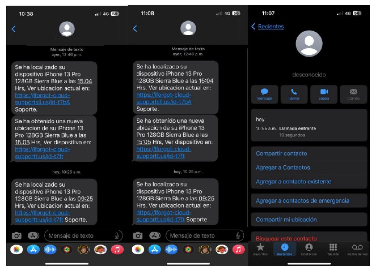 “Se ha localizado su dispositivo iPhone 13 Pro128GB Sierra Blue a las 15:04Hrs, Ver ubicación actual en: (insertaban link malicioso)”
