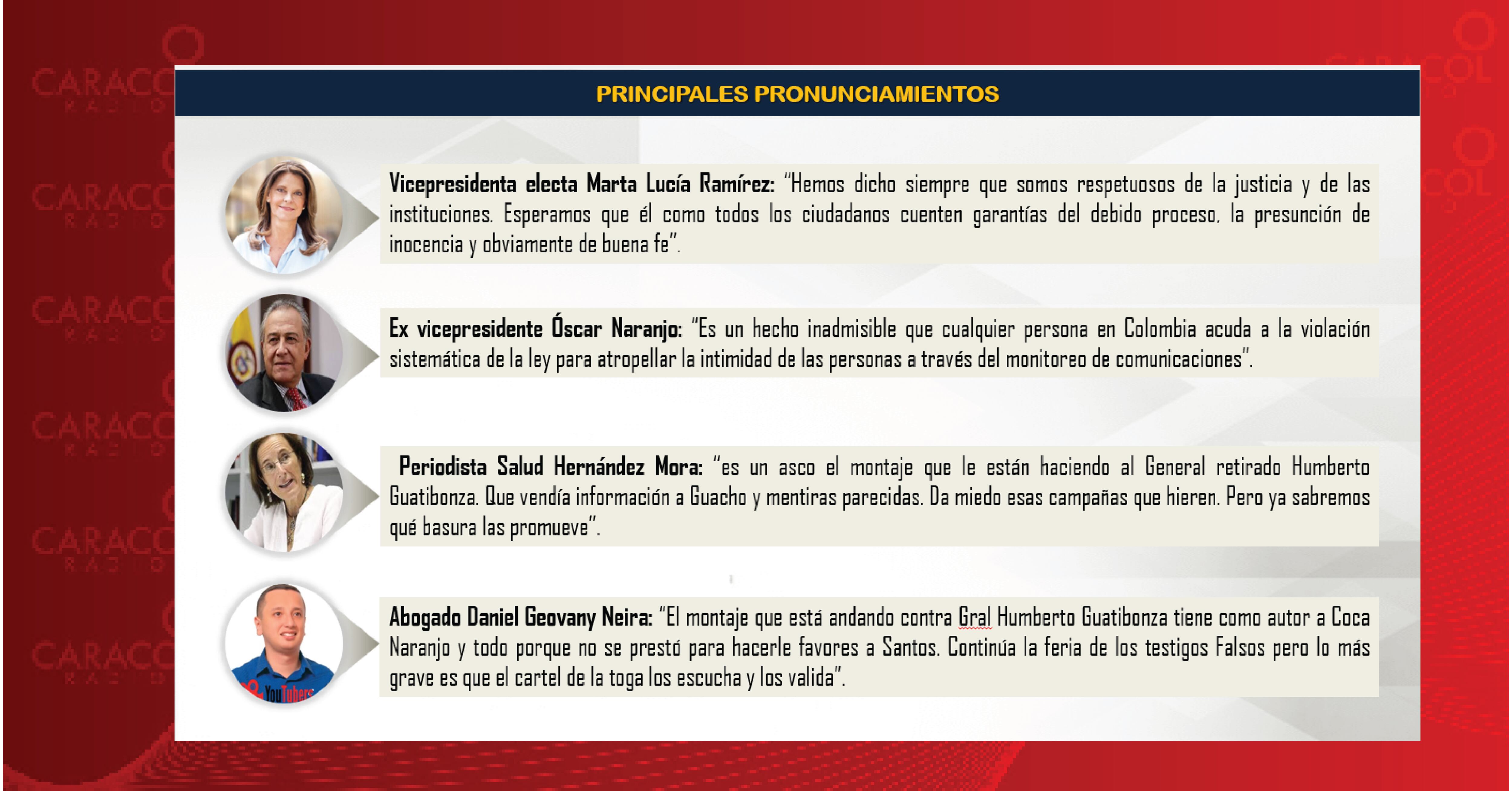 Caracol Radio encontró nuevos detalles del caso que se sigue en contra del general en retiro de la Policía, Humberto Guatibonza, su exjefe de prensa y un exagente de la Dijin por el caso de supuestas “chuzadas”.