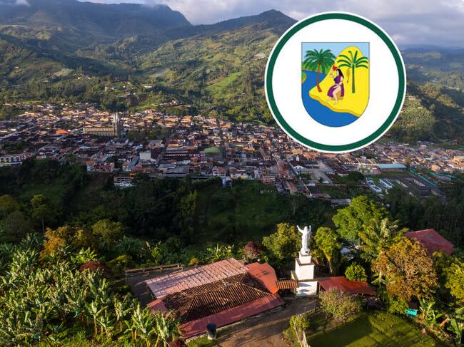 Vista aérea de Jardín y logo de Gobernación de Antioquia (Getty Images)