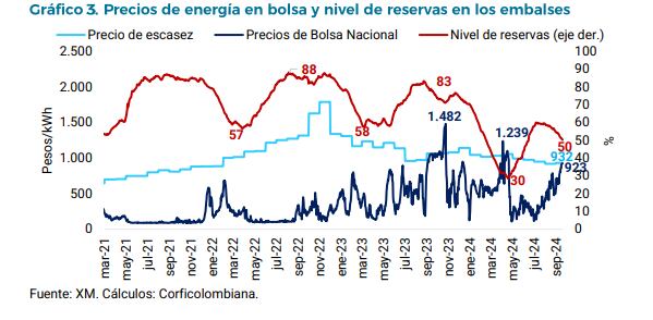 Esta situación ha llevado a que los precios en la bolsa se acerquen a los niveles de escasez, lo que generará presiones adicionales sobre el componente de generación en los próximos meses.