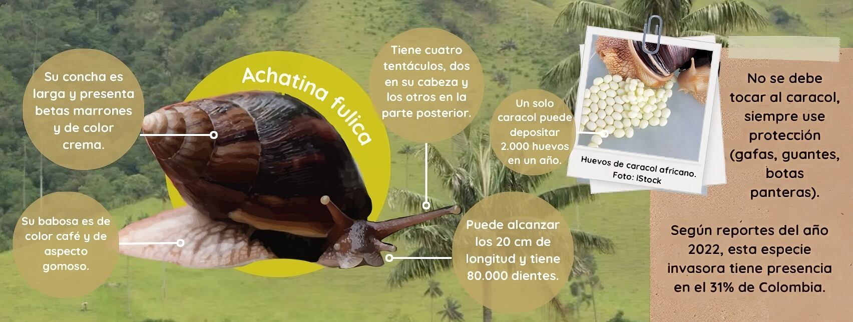 En el caso de Risaralda, el caracol africano genera un impacto medioambiental significativo, ya que, provoca el desplazamiento de las especies nativas y no tiene una distribución histórica natural en el departamento, además, afecta a los cultivos y si un humano entra en contacto con un caracol africano podría llegar a sufrir enfermedades neurológicas y digestivas.