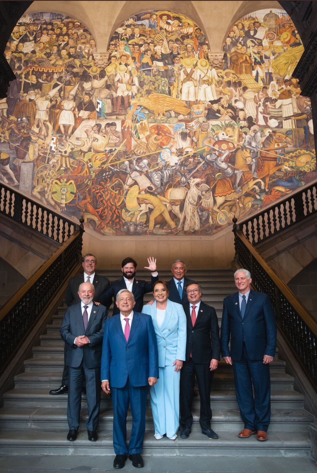 López Obrador tuvo su última reunión como presidente de México con sus homólogos de Honduras, Xiomara Castro; el primer ministro de Belice, John Briceño y los presidentes de Colombia, Gustavo Petro; de Brasil, Luiz Inácio Lula da Silva; de Cuba, Miguel Díaz-Canel Bermúdez; de Chile, Gabriel Boric Font y de Guatemala, César Bernardo Arévalo de León en el Palacio Nacional.