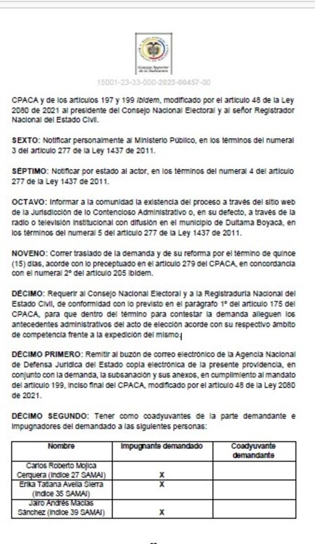 “Eso es un mensaje notorio de parte del honorable Tribunal Administrativo de Boyacá en donde cumpliendo un mandato del superior jerárquico como es el Consejo de Estado en el recurso de apelación del 6 de junio de 2024 le manifiesta que tenía que hacer lo dispuesto para la admisión de la demanda, pues por fin se dio ese cumplimiento”, afirmó el abogado Marco Antonio Palma.