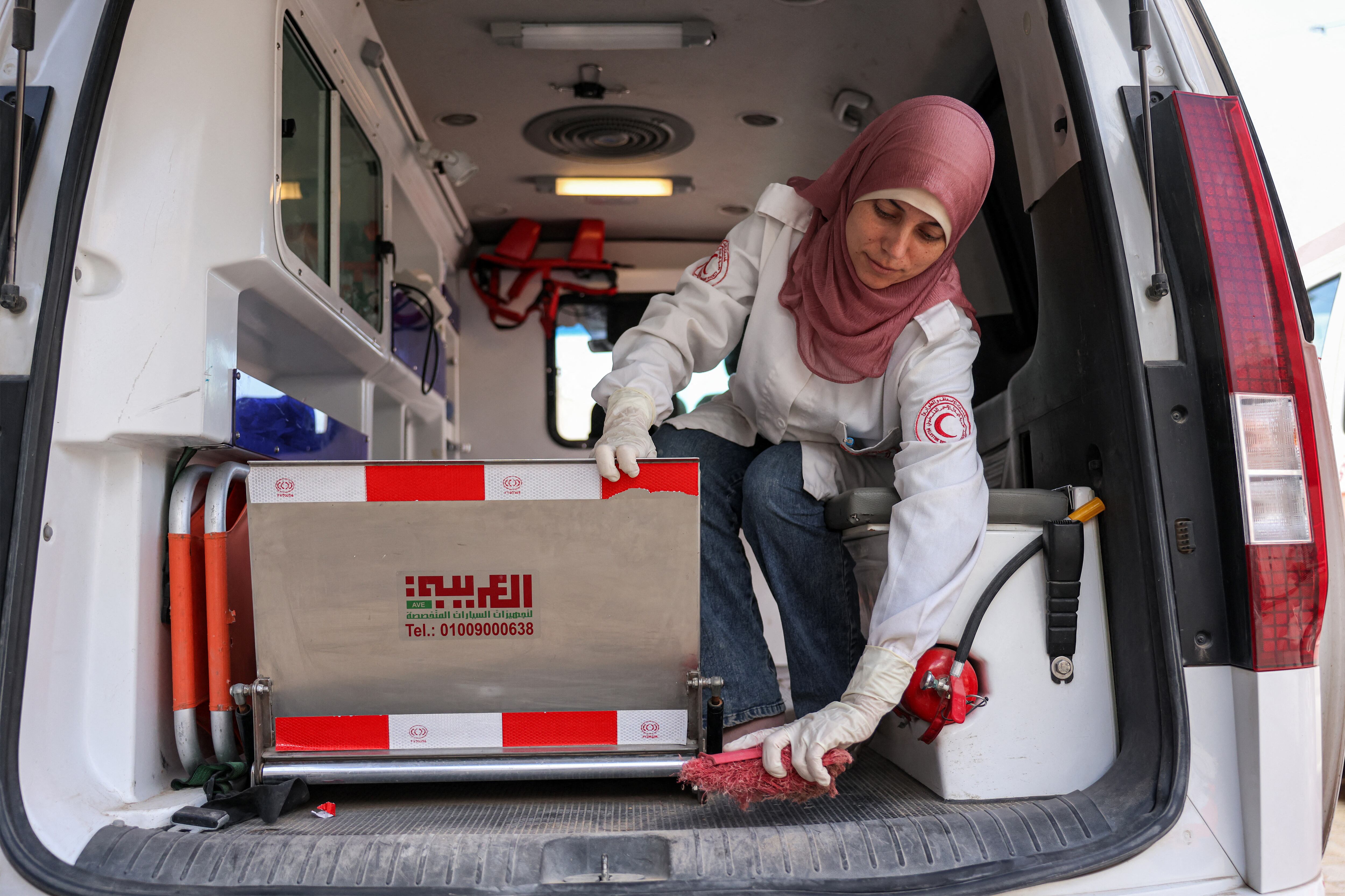 “Todo esto es presión psicológica sobre una mujer trabajadora”, dice Wafi desde su ambulancia, antes de ponerse a limpiar la sangre del suelo.