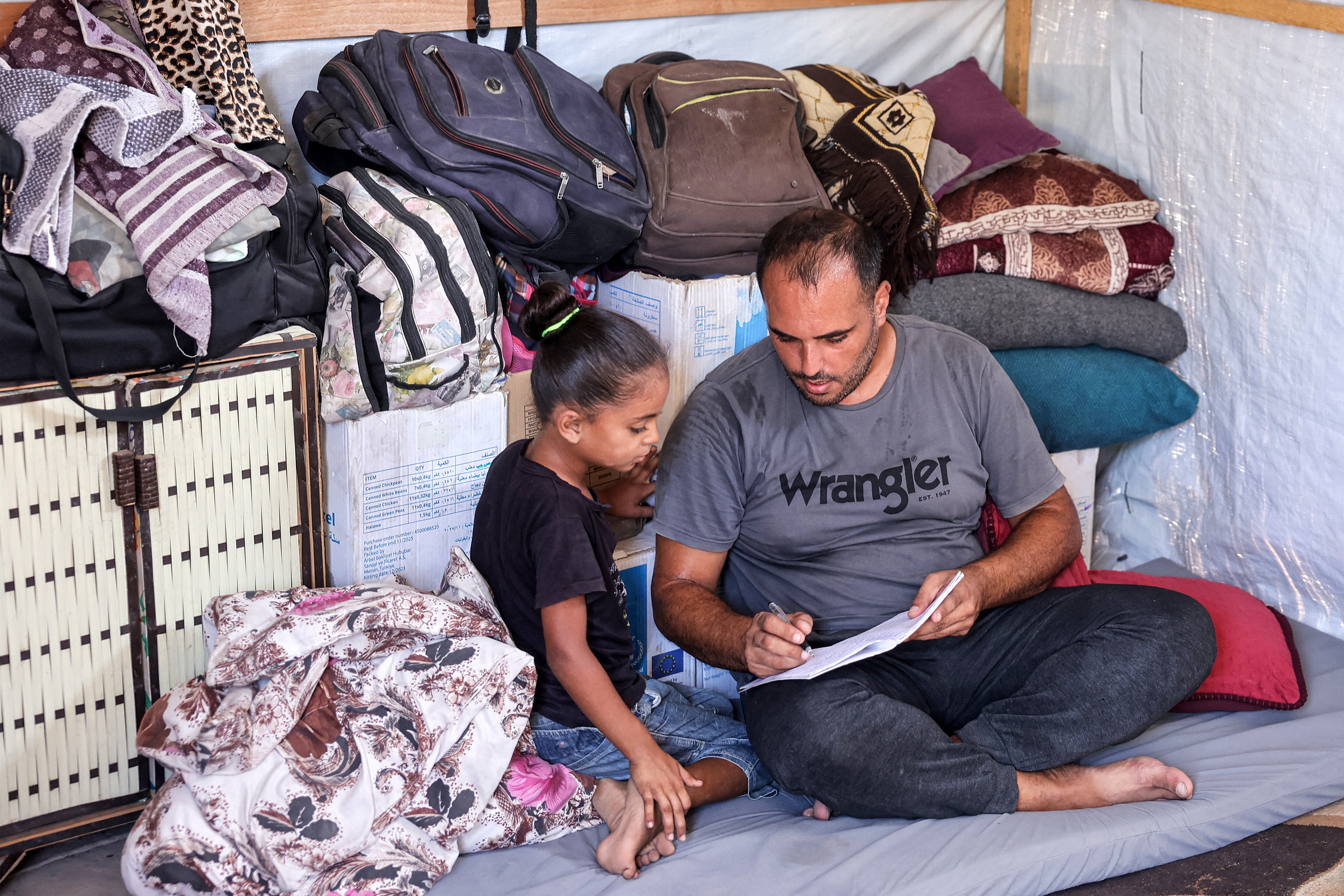 Fares al Farra y su familia abandonaron su casa en Jan Yunis, una ciudad en el sur de Gaza que se convirtió en campo de batalla entre Israel y los milicianos de Hamás, y buscaron refugio en un campamento temporal.
