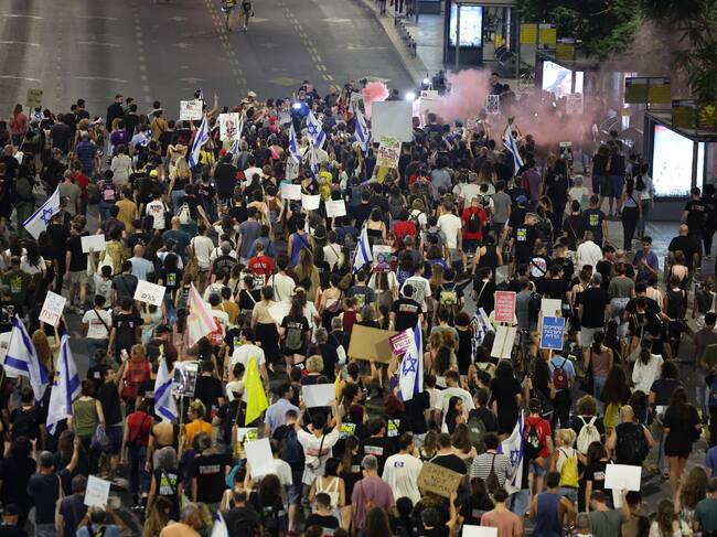 Protesta del Frente Rosa, un colectivo de oposición al gobierno de Benjamin Netanyahu en Israel. (Foto: JACK GUEZ/AFP via Getty Images) / JACK GUEZ