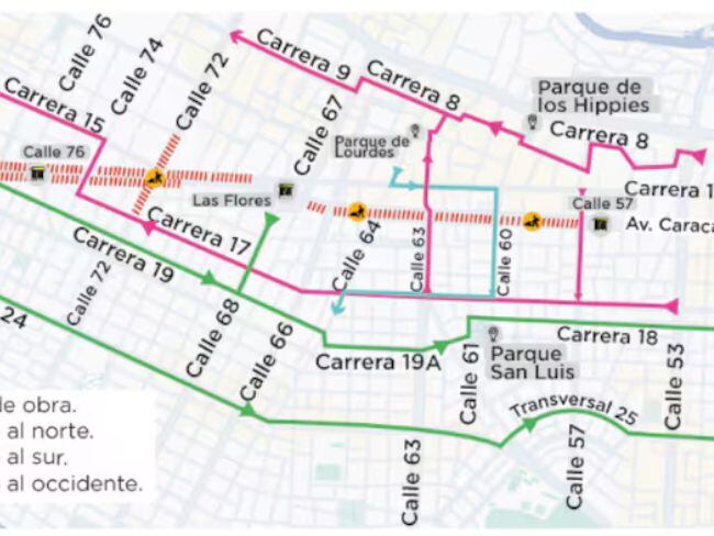 Las estaciones de TransMilenio Flores y Calle 57 seguirán funcionando con normalidad y también habrá paso peatonal.