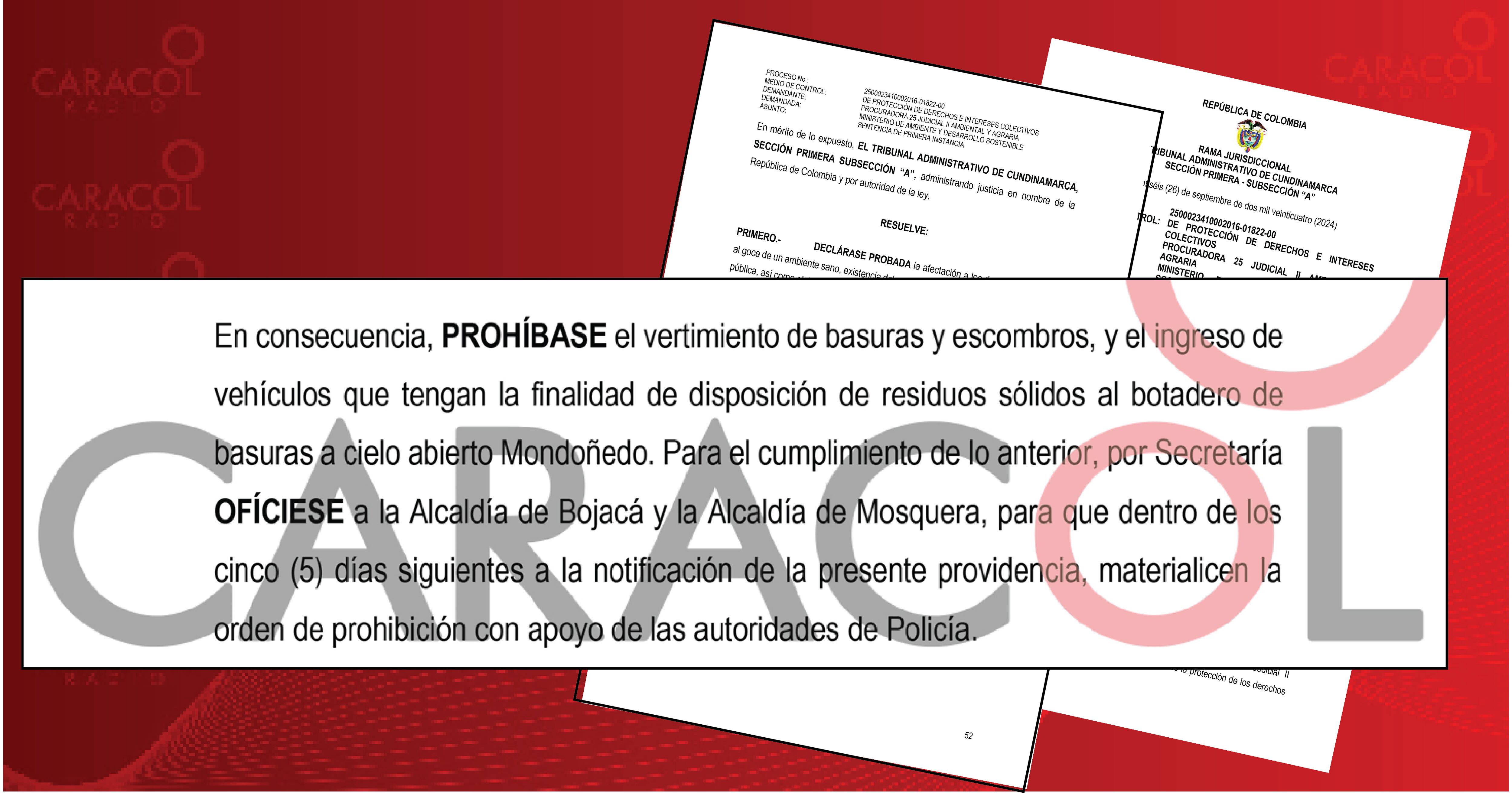 El fallo se debe a una acción de cumplimiento interpuesta por la Procuraduría General, en la que se alegó una “grave situación del botadero ubicado por la vía Mosquera-La Mesa (Cundinamarca), que ha estado causando serios problemas de contaminación y afectando los derechos colectivos de la comunidad”.