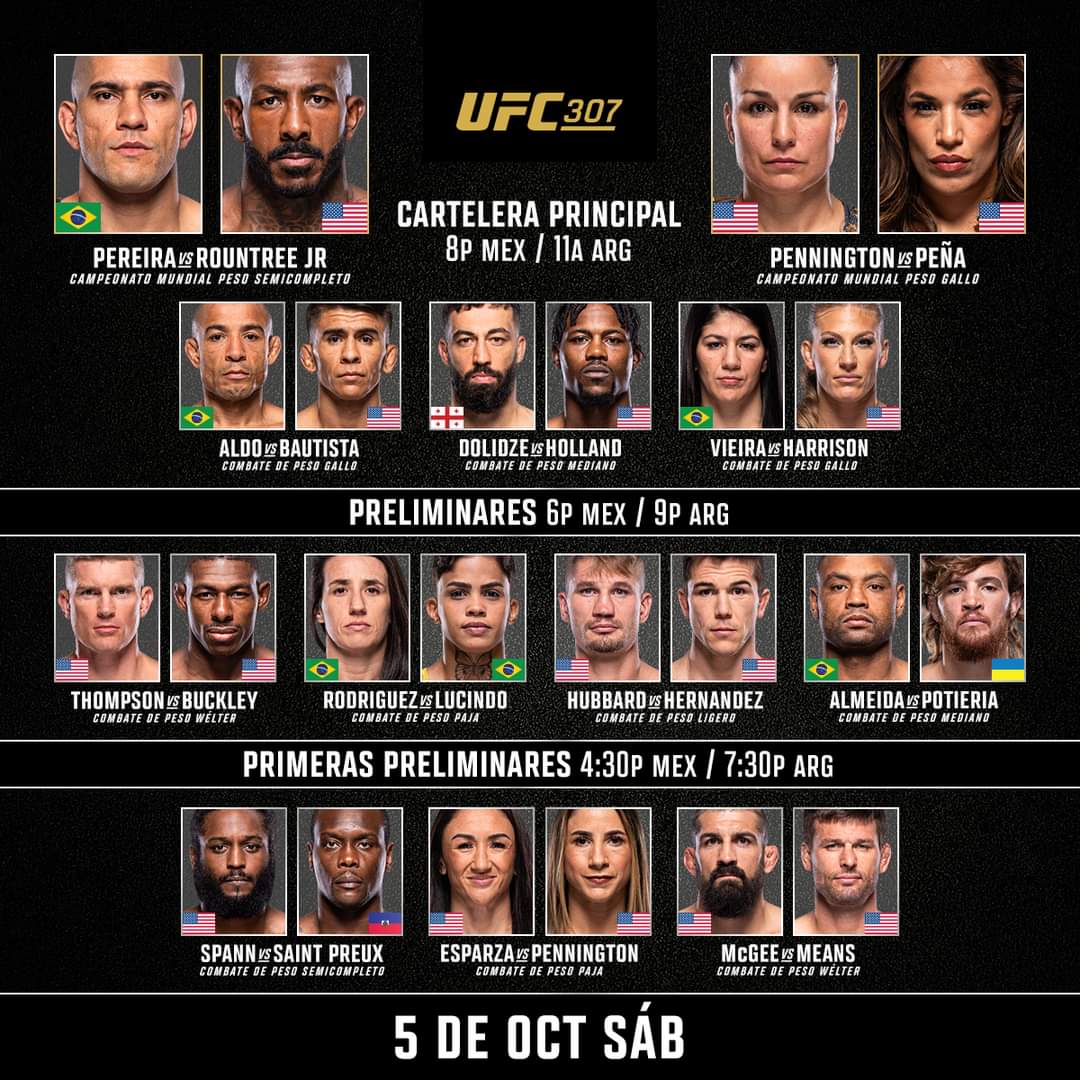 Con una noche llena de combates de alto nivel, UFC 307 promete ser un evento inolvidable para los fanáticos de las MMA en todo el mundo.