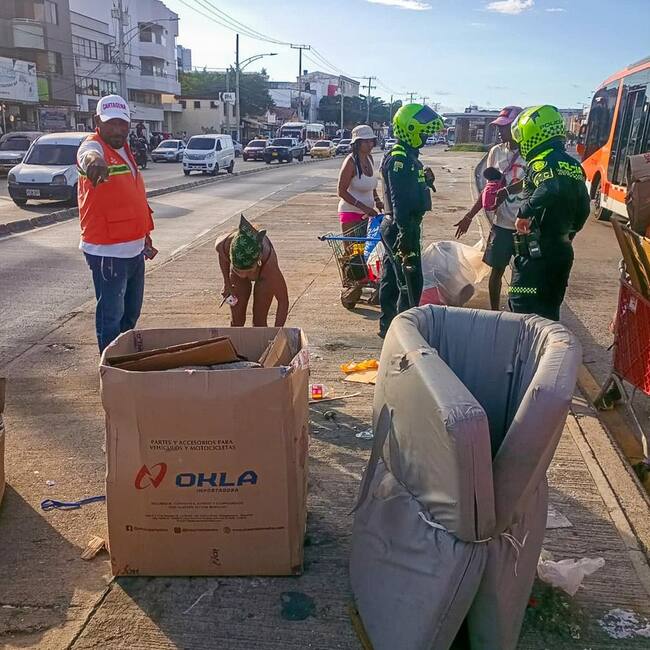 Con el apoyo de la empresa de aseo Pacaribe y la Policía Nacional se hizo limpieza del separador y se retiró un cambuche que había sido levantado, con cartones, retazos de tela y otros residuos, por habitantes de calle, a la altura de la intersección de la avenida Pedro de Heredia con la calle que conduce al barrio La Quinta.