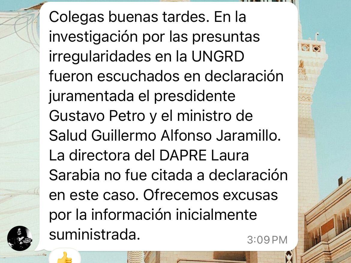 Cabe resaltar que si bien la Corte Suprema de Justicia había explicado inicialmente que la directora del Departamento Administrativo de la Presidencia de la República, Laura Sarabia, tambien había declarado, explican del Alto Tribunal que fue un “lapsus” y que ella habría comparecido en otro caso.
