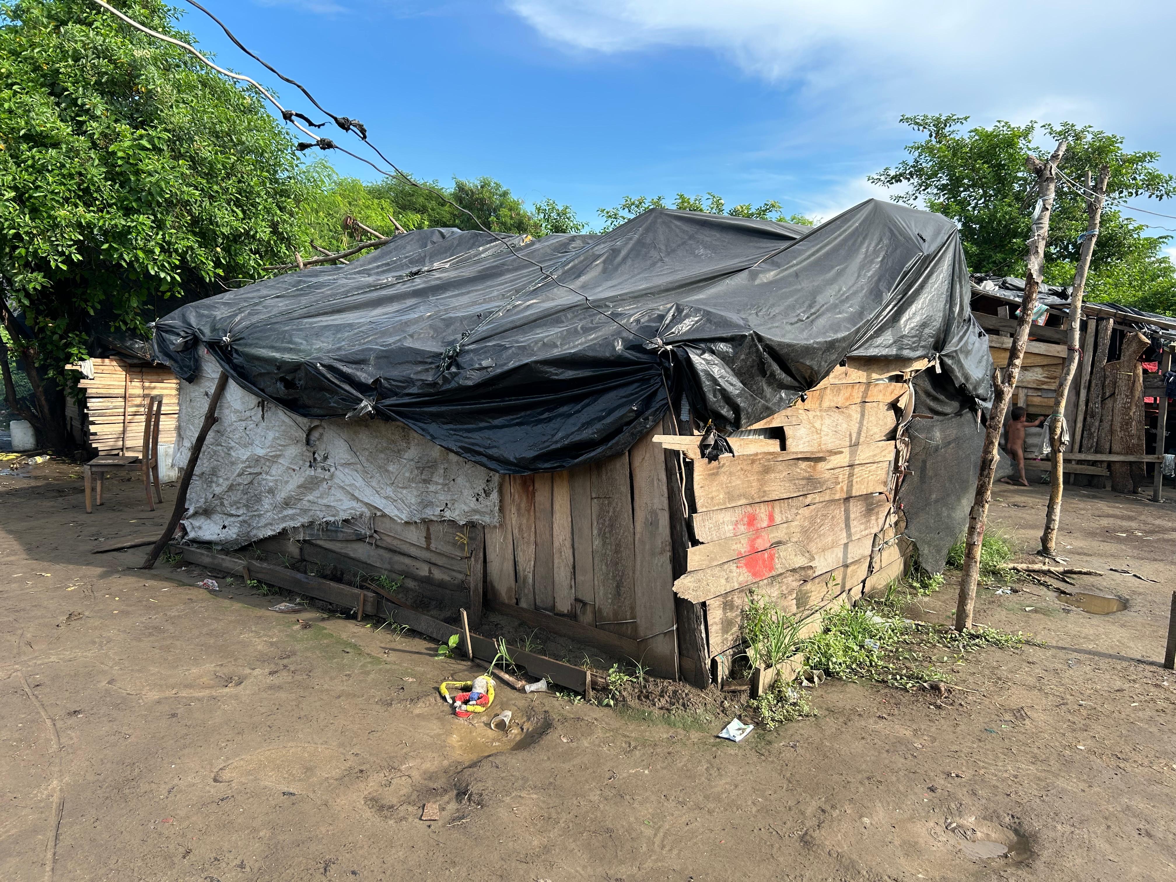 Al llegar, todas las casas son de madera y muchas están deterioradas. Incluso, el agua se filtra por el techo.