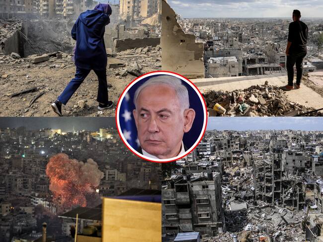 Los efectos de los ataques de Israel en Líbano (izquierda) y en la Franja de Gaza (derecha) ordenados por el primer ministro israelí, Benjamín Netanyahu. (Foto: Caracol Radio / Getty)