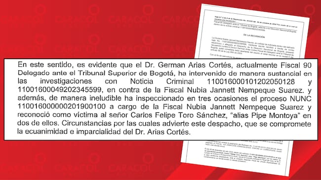 En contra de la fiscal Nempeque se abrió una indagación, porque, supuestamente, trató de darle apariencia de legalidad a unos correos anónimos, informes de policía judicial alterados, interceptaciones ilegales e informes contables modificados para continuar el juicio contra ‘Pipe Montoya’