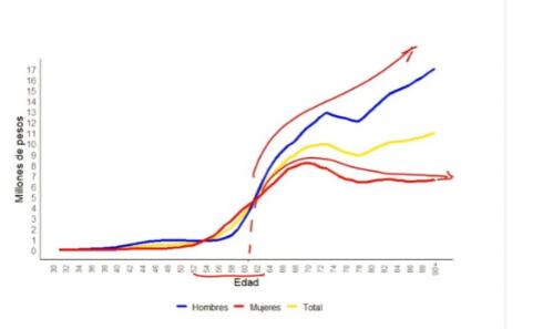 Las transferencias por pensiones, para las mujeres son, en promedio, un $1,8 millones menores que las de los hombres a lo largo de la vida.