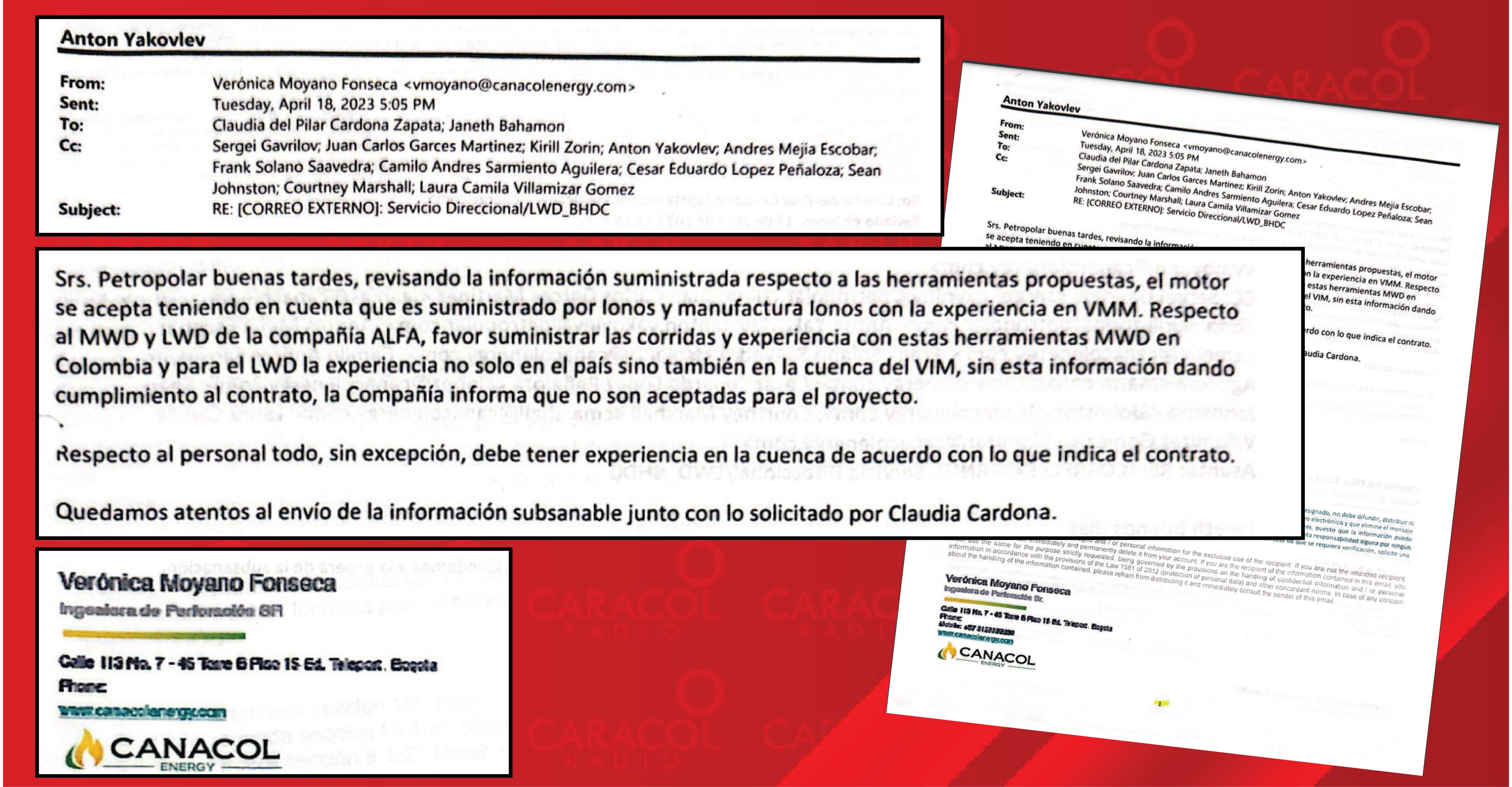Otra de las pruebas de la injerencia de CANACOL Energy sobre las decisiones de PETROPOLAR Sucursal Colombia, son los correos cruzados donde CANACOL aprobaba quien entraba y quién no al negocio. ((VER CORREOS))
