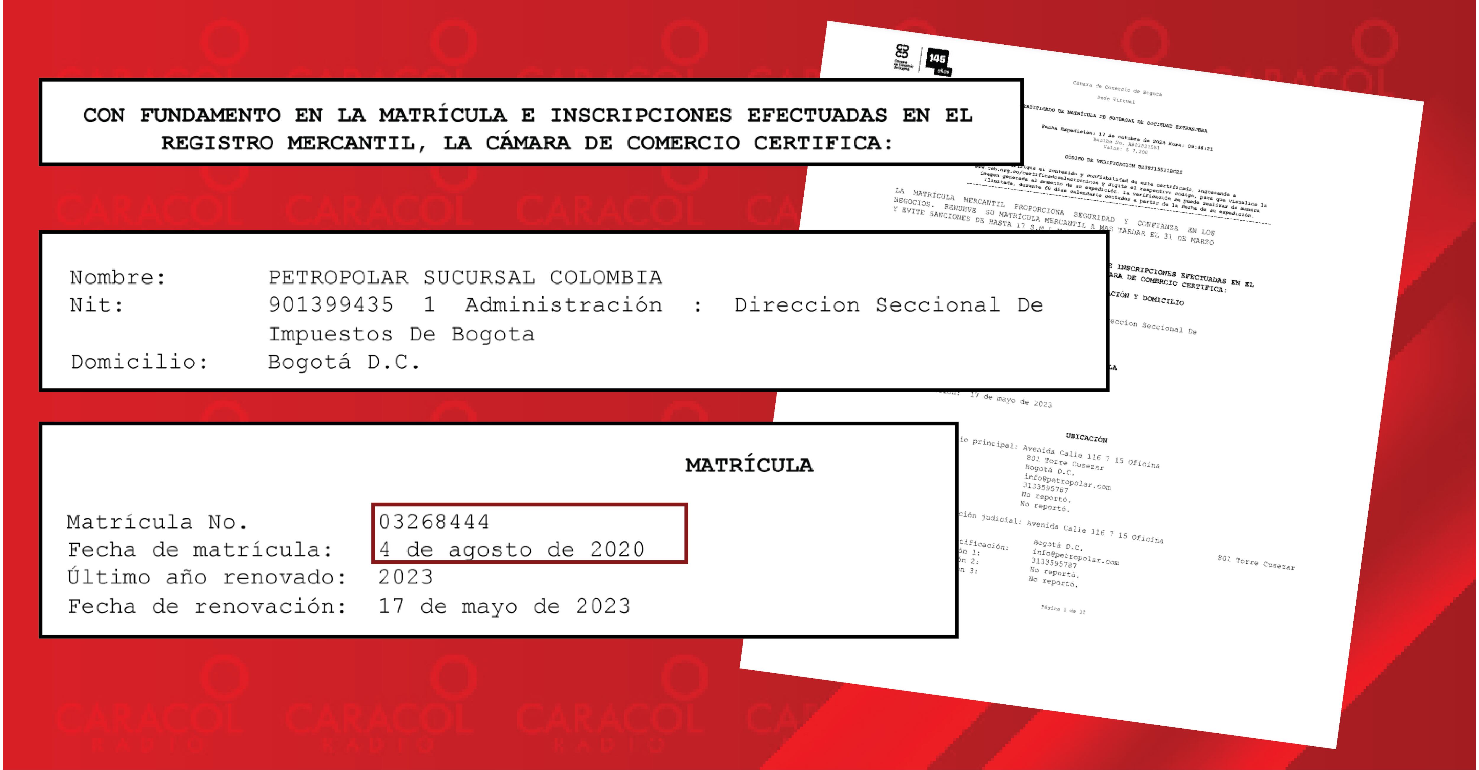 Cámara y Comercio de PETROPOLAR confirma que esa empresa fue creada en 2020