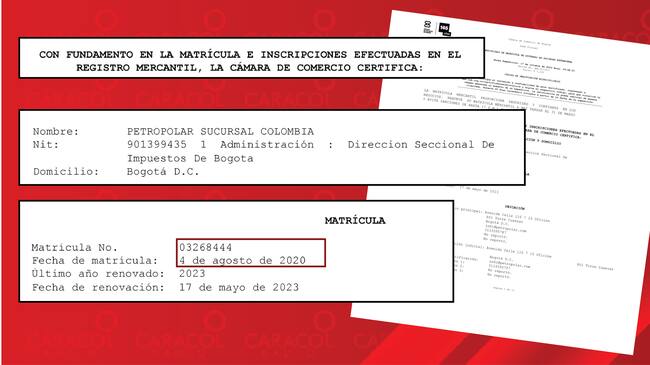 Revisando el Cámara de Comercio y matrícula mercantil de Petropolar sucursal Colombia, esa empresa fue creada en agosto de 2020, con un capital de USD $310.000, es decir, para los años 2017, 18 y 19 esa empresa no existía en Colombia y no se explica cómo certificaron la experiencia para quedarse con el contrato. ((VER CÁMARA DE COMERCIO))