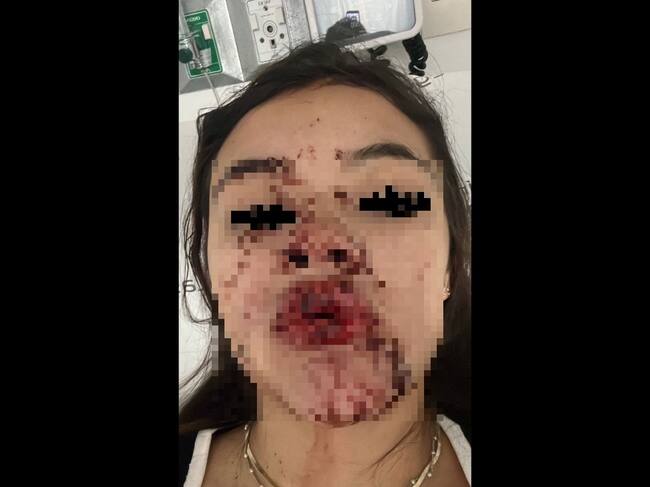 La joven mujer fue llevada en ambulancia a la clínica Las Vegas, donde se le realizaron dos cirugías plásticas y una maxilofacial mientras estuvo hospitalizada durante todo el fin de semana como consecuencia de esta agresión.