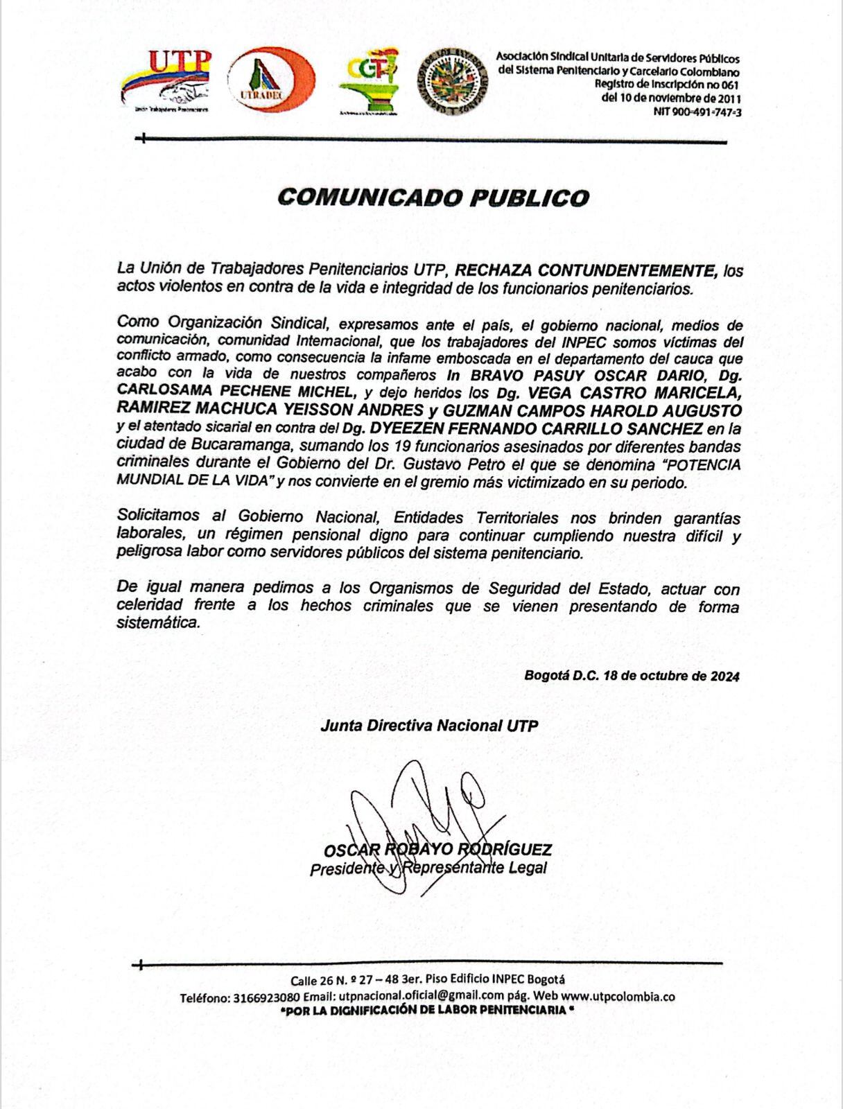 En los últimos 4 años según el Inpec, han sido asesinados 63 funcionarios demostrando así el alto riesgo y la falta de protección en su diario vivir.