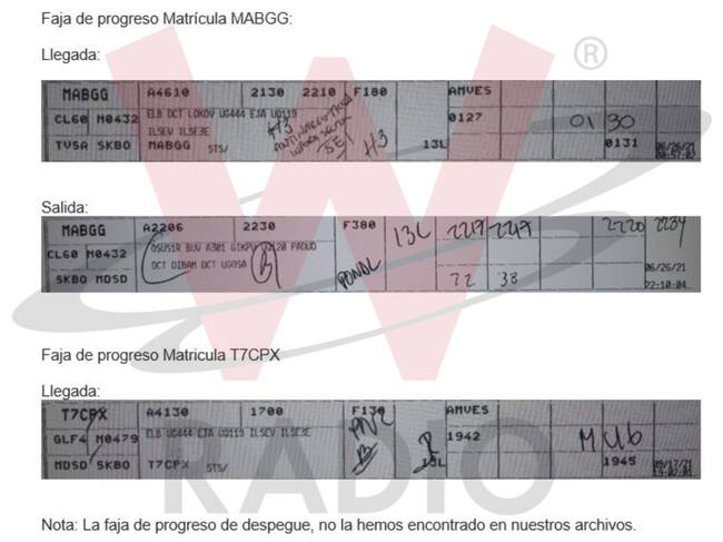 Según le confirmó la Aeronáutica Civil a W Radio, los aviones que movilizaron pagos para Pegasus fueron recibidos por la Policía Nacional.