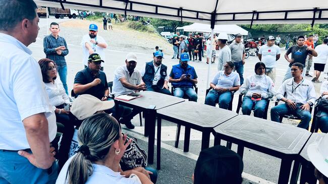 Mesa de diálogo sobre la carretera Manizales - Medellín a la entrada de Marmato, Caldas. Foto suministrada.