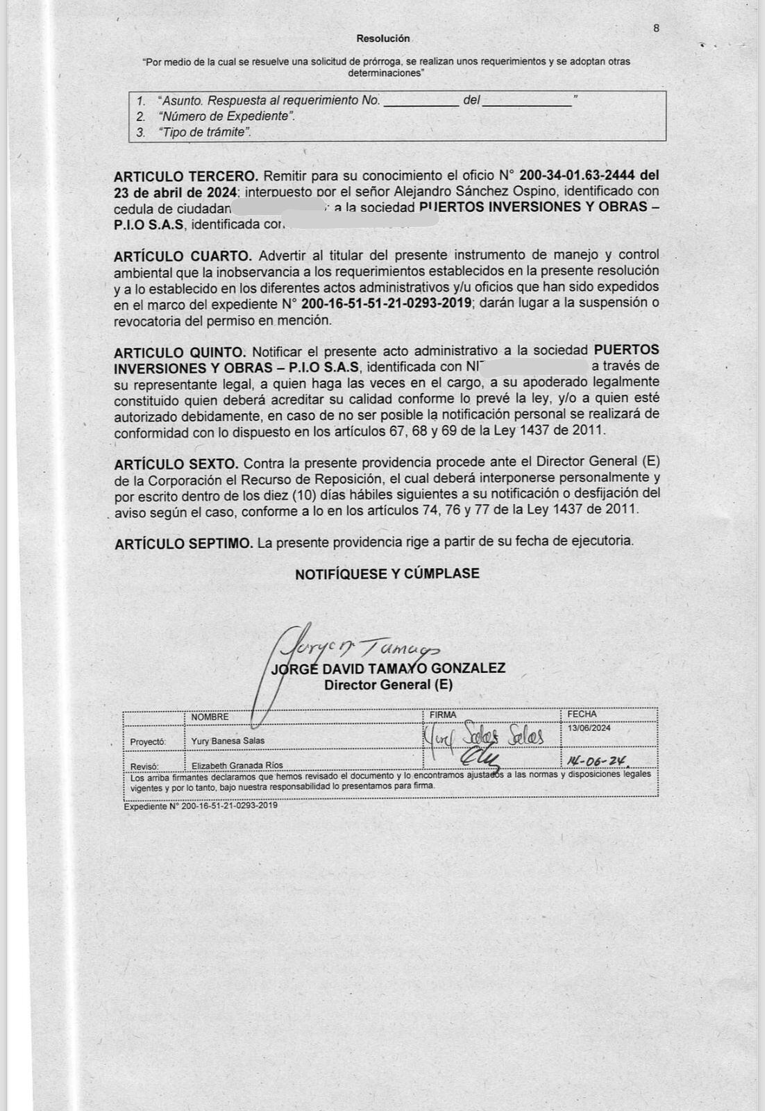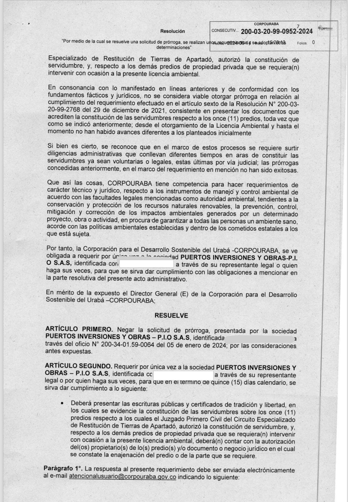 Adicionalmente, W Radio tiene un documento que establece que la Sociedad Puertos Inversiones y Obras, que se encarga de la red de energía, tiene la licencia ambiental vencida. Esta empresa solicitó cuatro prórrogas y una de ellas, la última, fue negada. Aun así, se está adelantando el proyecto en este predio.