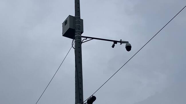 Instalación de nuevas cámaras de vigilancia en la vía La Seca, Bello. Foto: Alcaldía de Bello.