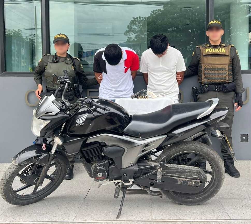 La Policía Metropolitana de Cartagena informó que, gracias a la información oportuna de la comunidad desplegó el rápido operativo en la transversal 54 del barrio El Bosque, “donde se interceptan dos sujetos con un arma de fuego, a bordo de una motocicleta marca Honda - Invicta, color Negra, de placa EVS-21E”.