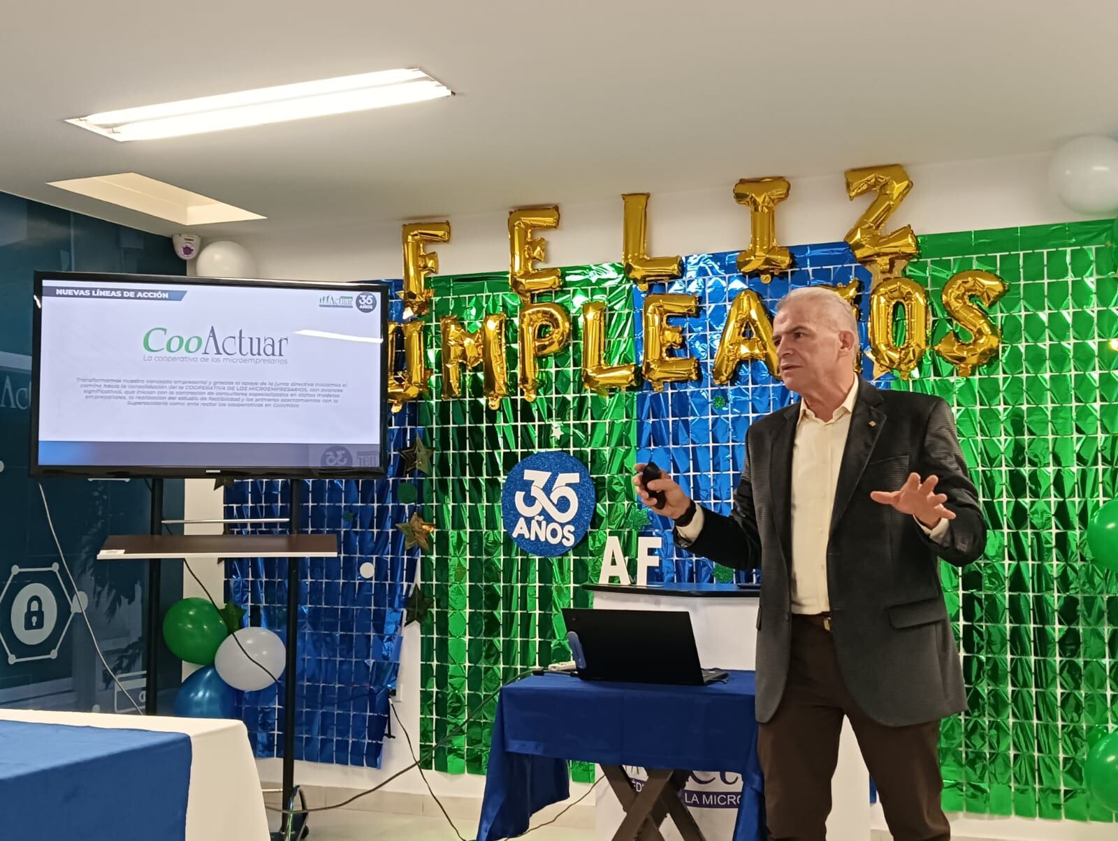 Y pues el gran lanzamiento de un tema que venimos trabajando con unos consultores nacionales e internacionales para la creación de una cooperativa, la cual según los cálculos nuestros y con reunión, que ya hemos hecho, no solamente con la superintendente de economía solidaria y con las diferentes organizaciones los cálculos es que el primer semestre del año entrante ya esté funcionando esa, Cooactuar.