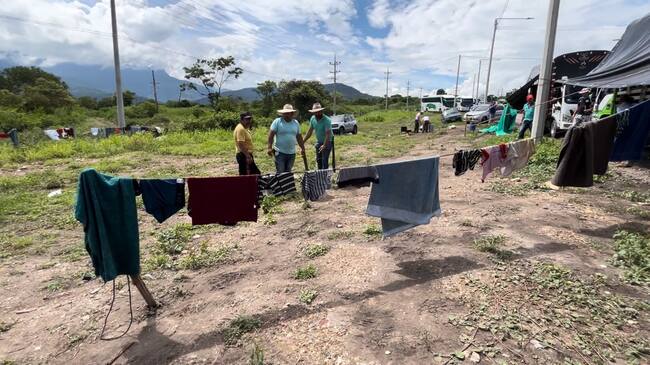 En cambuches, durmiendo en carpas, hamacas y contando con el apoyo de los locales comerciales para las necesidades básicas, así han sobrevivido los cerca de 800 campesinos que adelantan su bloqueo en el peaje Los Acacios.