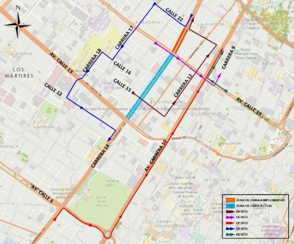 Los usuarios que transiten en sentido Sur-Norte por la Av. Caracas, deberán tomar la Av. Calle 6 al oriente – Av. Carrera 10 al norte.