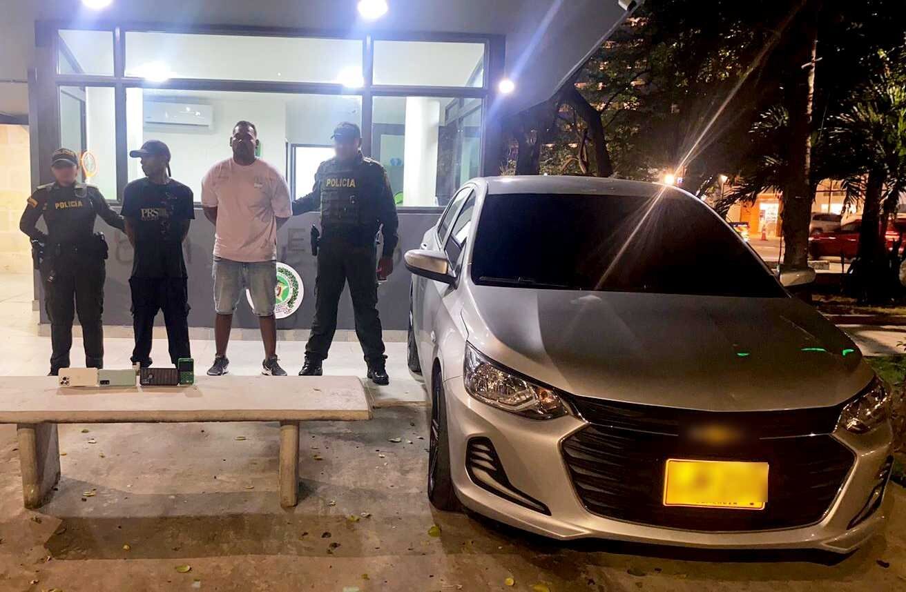 El turista fue dejado en la calle Larga del barrio Getsemaní, donde pudo contactar a una patrulla de vigilancia, quienes de inmediato aplicaron un plan candado por toda la ciudad, logrando interceptar el vehículo a la altura del barrio Canapote, capturando a alias “el Musculito” y “el Rubén”, de 35 y 40 años.