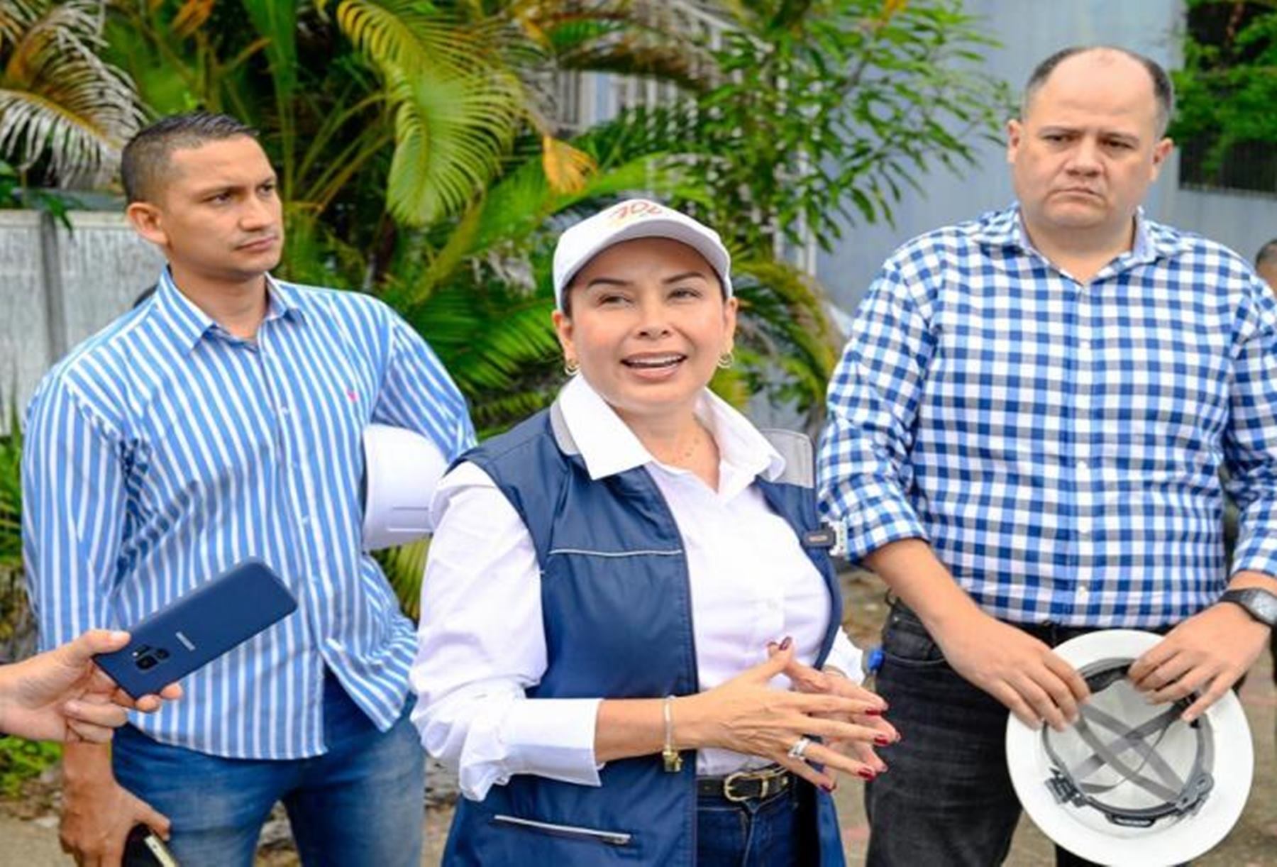 Alcaldesa, Johana Aranda y Jonathan Suarez, secretario de Infraestructura