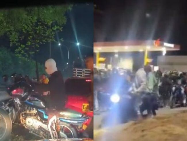 “Eso fue anoche, íbamos por el Anillo Vial y nos encontramos con un trancón porque había sin exagerar como unas 300 motocicletas. Se estaban organizando, gente sin casco, haciendo piruetas y algunos con máscaras”, dijo un conductor de taxi.