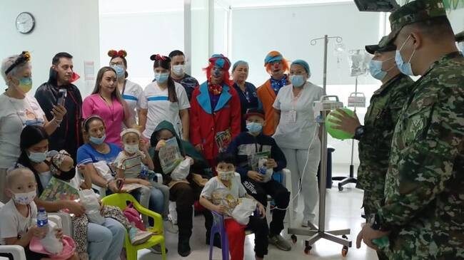 La Fundación Pequeños Guerreros y el Batallón de Acción Integral realizan una actividad de acompañamiento a los niños que se encuentran hospitalizados, para que puedan tener una jornada especial en su día.