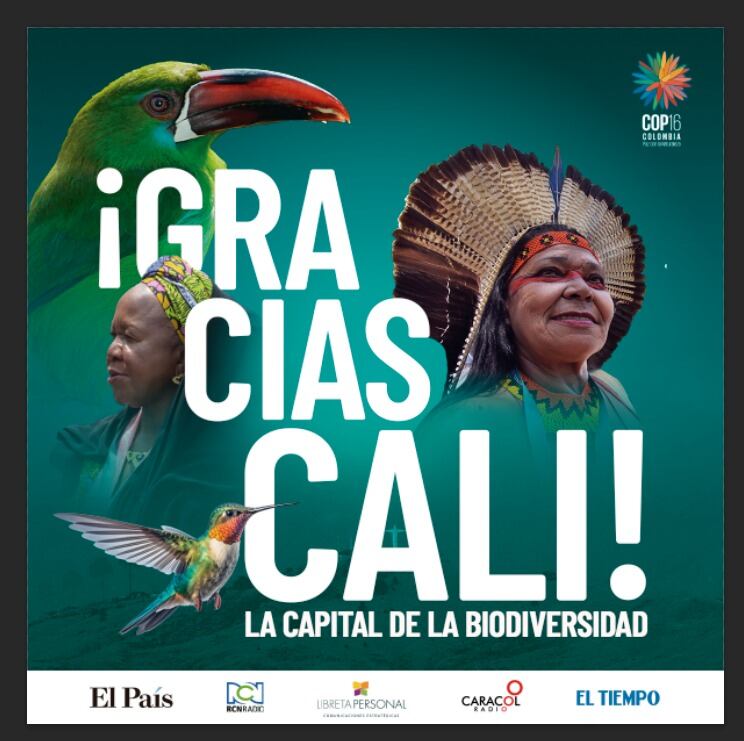 ¡Gracias Cali! es la frase con la que despierta la ciudad hoy con los buenos resultados que ha dejado la COP16, con lo cual se ha posicionado a la ciudad en el mundo como una ciudad biodiversa.
