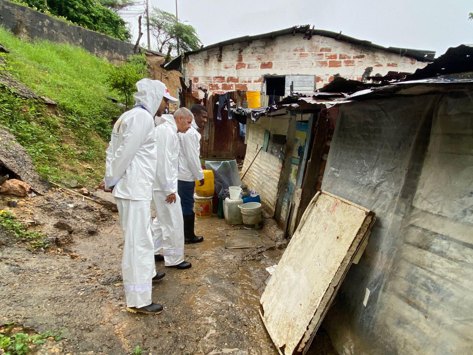 El alcalde mayor de Cartagena, Dumek Turbay Paz, acompañado por el director de la Oficina Asesora para la Gestión del Riesgo de Desastres (OAGRD), Daniel Vargas, y el secretario de Infraestructura Distrital, Wílmer Iriarte, adelantaron visitas de inspección en diferentes barrios de la ciudad en respuesta a las lluvias generadas por la perturbación tropical AL97 que se desarrolla en el mar Caribe.