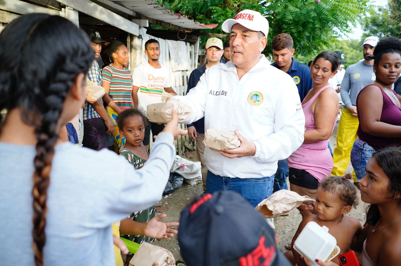 Conforme con el plan de contingencia liderado por el alcalde mayor de Cartagena, Dumek Turbay Paz, desde la Calle 14 del barrio Fredonia, la administración distrital dio inicio a la entrega de más de 500 mercados y comida preparada a las familias afectadas por las inundaciones, este domingo.