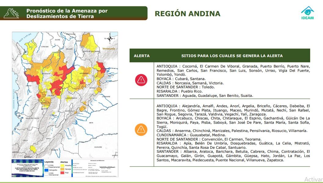 Alerta naranja por amenaza de deslizamientos de tierra en 22 municipios de Santander