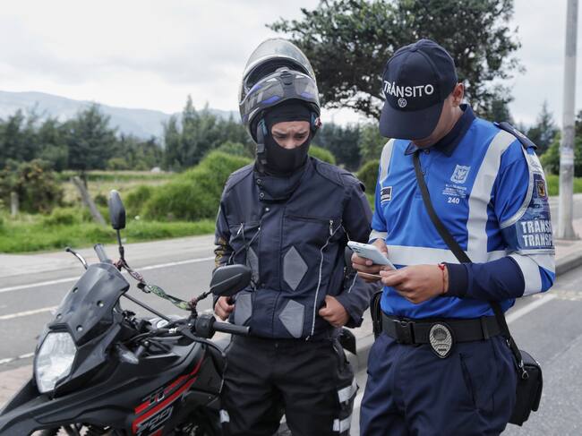 Agente de tránsito revisando documentos a motociclista (Colprensa) / Camila Díaz