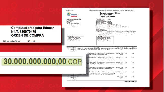 De todas las órdenes de compra a Selcomp Ingeniería y el fabricante Compumax, la más cuestionable para las autoridades es la 101210 de 2022. De los 60 mil portátiles comprados la mitad no sirvió.