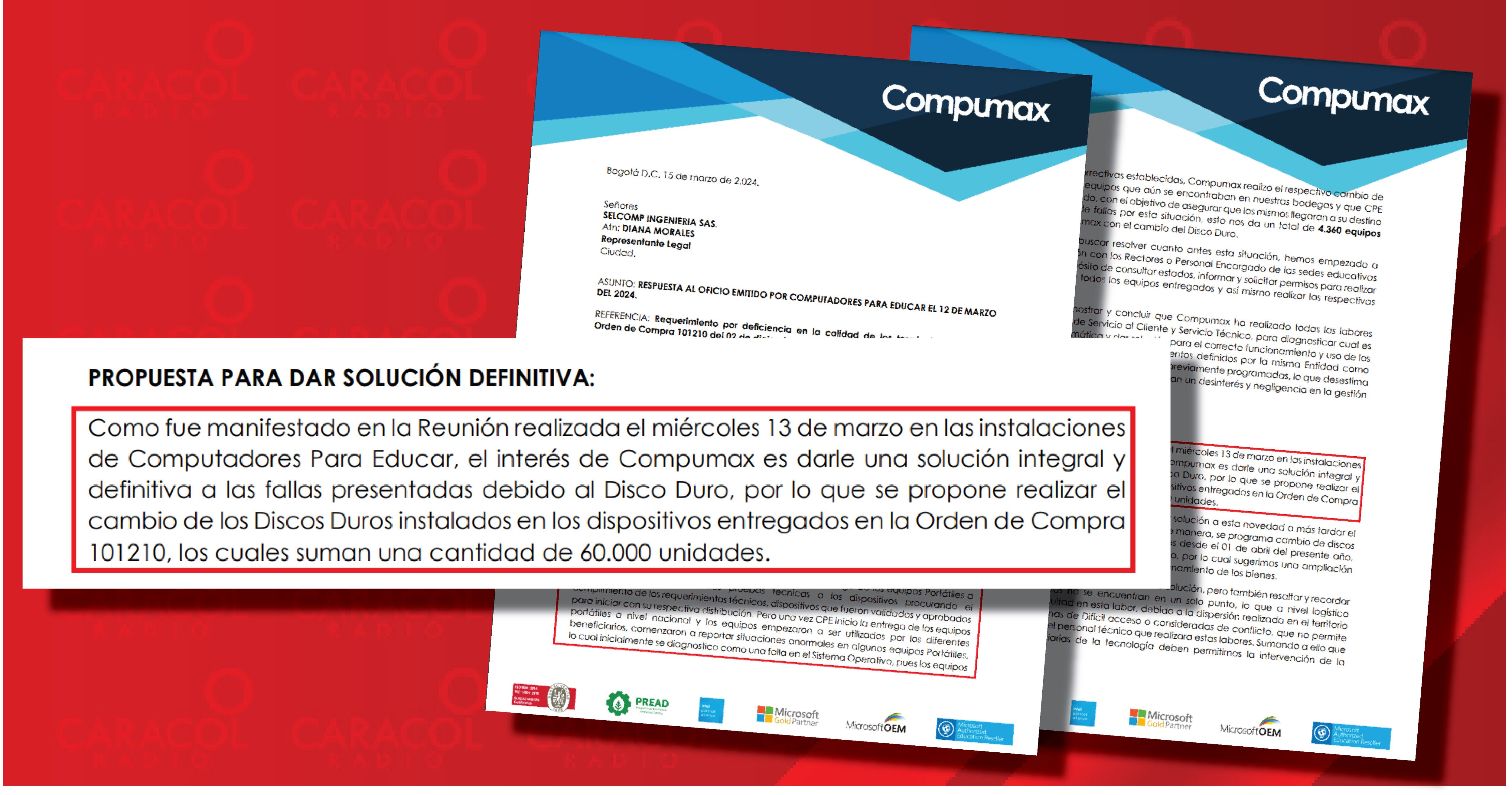 En un oficio de cuatro páginas el gerente de Compumax dijo que al hacer el análisis se determinó que no las fallas no se presentan en la totalidad de los equipos, sino que es aleatorio.
